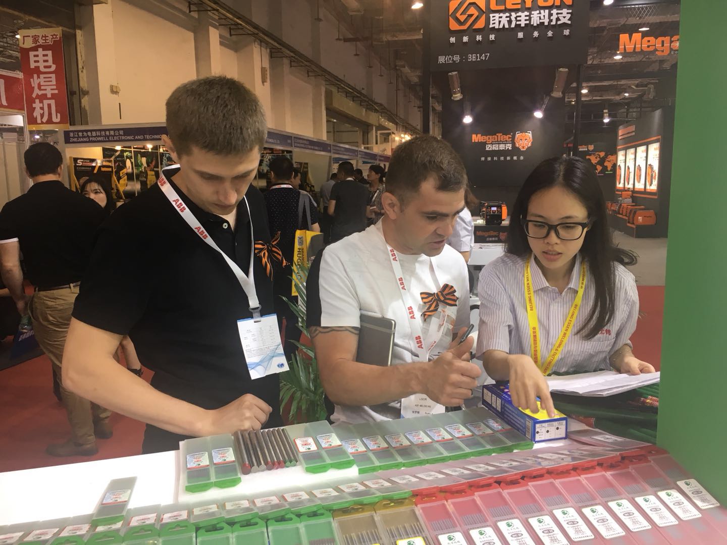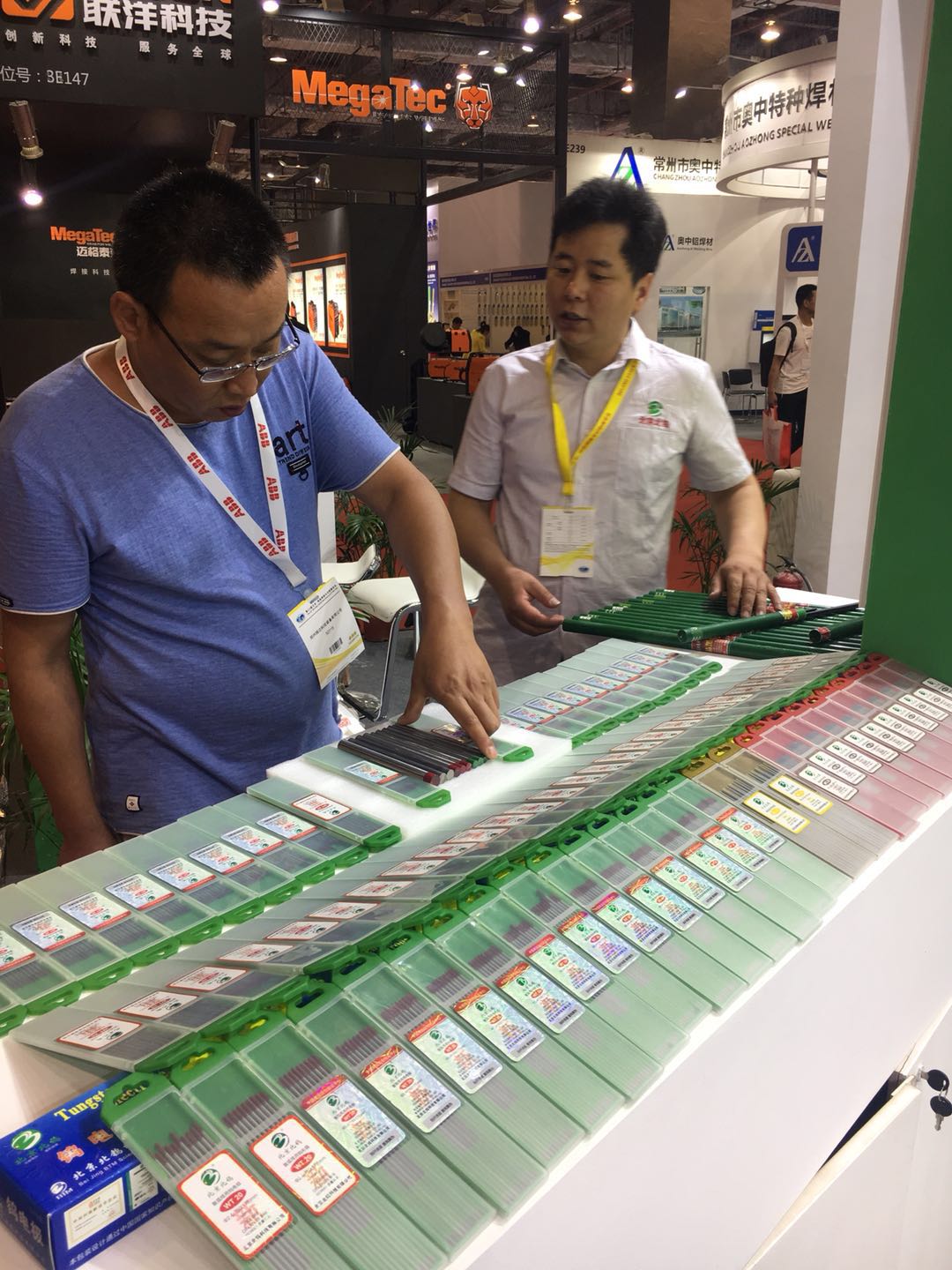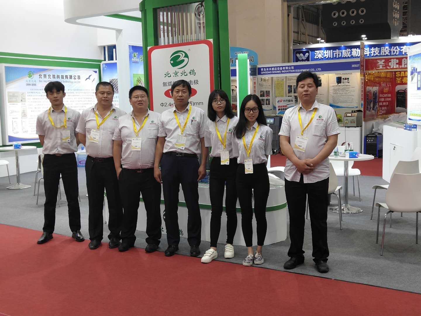 展会期间,公司展台三大区域(业务洽谈区、前台接待区、产品展示区)人山人海,与同行业其他厂家展台门可罗雀的景象形成鲜明的对比,更是令他们望其项背。由于参观者应接不暇,在业务洽谈区,每个业务员几乎需要不间断的同时接待三、四个客户,很好的说明了我们业务人员的能力及产品的市场需求度。在产品展示区,钨电极、及焊材一应俱全,摄像灯不停的闪烁,客户纷纷摄影留念,同行业厂家更是派出学习小组前来参观学习;大屏幕液晶电视轮番播放公司的企业宣传片,这是公司企业形象,生产能力及信心的真实体现,同行业任何厂家都没有实力与信心将其生产线展示出来,来访者无不驻足观看并啧啧称赞。前台接待区更是忙不停息,业务洽谈区无法接待的客户,只能在前台接待区排队互留名片并领取我公司产品目录,以寻求后续的合作。在此次展会上参展人员分工负责、相互协调,诠释了团队合作精神,圆满的完成了客户的接待及品牌的宣传工作。我公司生产的钨电极产品依然是钨电极行业的旗帜、依然走在焊接行业的前沿。